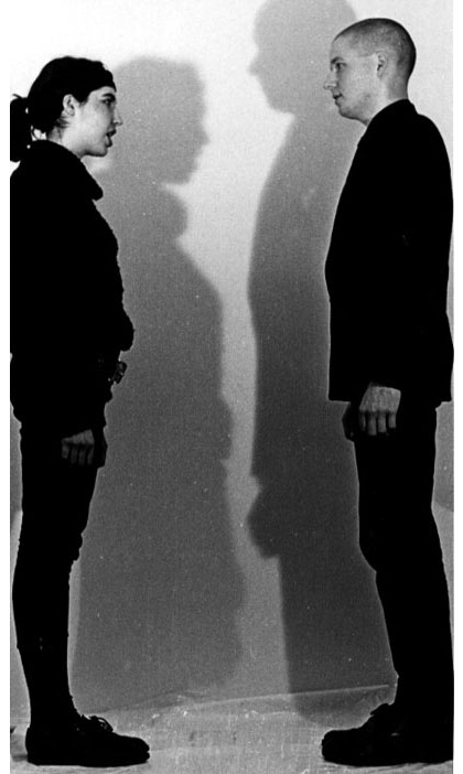 La foto muestra a dos personas haciendo una performance de Karen Eliot. Simplemente deben discutir entre ellos diciendo cada uno "mi nombre es Karen Eliot" hasta que la audiencia salga.