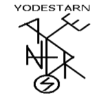 Y para utilizar el diagrama de la rosa y la cruz, simplemente se coloca un papel sobre el diagrama y se conectan las letras que conforman el glifo. El Sigil para "YODESTARN" resultaría así: