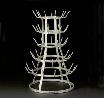 “Rueda de Bicicleta”. Consistía en un banco de madera sobre el que estaba montada una rueda de bicicleta que podía rotar libremente sobre ambos ejes (pues el “manubrio” también rotaba, de modo que ambos movimientos en simultáneo creaban una esfera tridimensional).