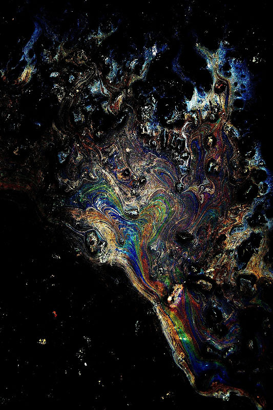 (Eleanor Leonne Bennett)Es una imagen ambiental para mi misma. Ya venía queriendo sacar una foto del arcoiris de una mancha de nafta hacía varios años. ¿Cómo es posíble que una cosa que ha causado tanta guerra, odio y muerte en el reino humano y en el reino animal pueda resultar tan bella cuando una se encuentra con ella por casualidad? Es posible transformar al Cielo en el Infierno y viceversa. Yo quiero crear belleza y poder llegar a la mayor cantidad de gente posible durante el mayor tiempo que me resulte posible.