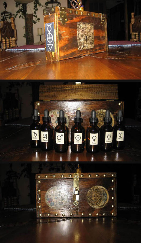 Estos cuatro Baphometh de cera fueron consagrados con plantas sagradas afines a Mercurio: mejorana, hinojo, y valeriana preparada de forma espagírica. El Matrimonio Alquímico es frecuentemente representado en su forma más material por minerales, como el aspecto femenino, y plantas, como el aspecto masculino (sobre esto puede leerse en “Real Alchemy” de Bertlett). El bronce tiene un 93% de cobre, el metal/mineral que es atribuído a Venus/Afrodita, de modo que tomando como contraparte las plantas de Mercurio/Hermes, buscaba reíficar las cualidades HermAfroditas de los Baphometh.