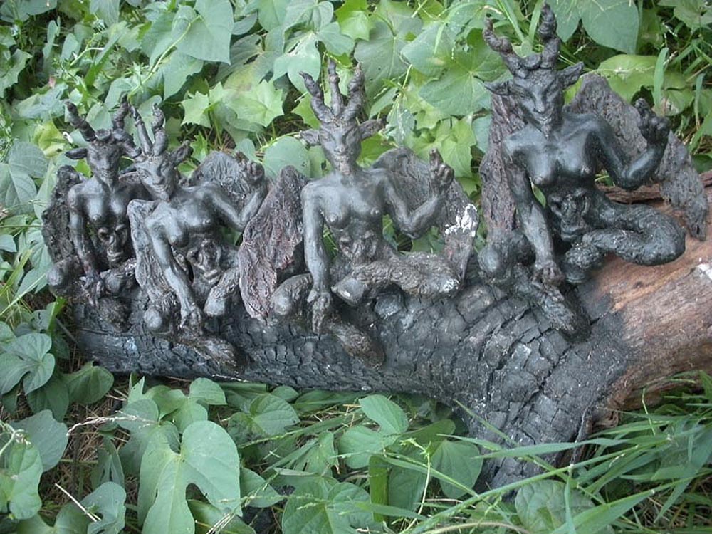 Cuatro Baphometh de cera negra esperan su consagración con hierbas Mercuriales antes de ser copiados en huevos alquímicos
