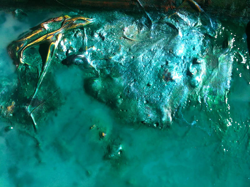 (Eleanor Leonne Bennett)Este es un plano detalle de una piel de tiburón que cubre el mango de una espada que encontré en un negocio de antigüedades de la Marina. Tomé esta foto hace poco y no había encontrado ninguna otra foto de algo parecido en la internet o en las imágenes pre-diseñadas de los programas de edición fotográfica que utilizo. Me siento muy cercana al agua y a la anatomía animal marina. Ahora se me ocurre que tal vez algunos de mis trabajos con materiales orgánicos pueden ser pensados como citas a las obras de Damien Hirst, tal vez como una inspiración e intención de llevar el arte a un lugar distinto. Aún así, me siento mucho más cercana a Beatrix Potter que a Damien Hirst. Ella escribe libros para niños, pero debo admitir que sus libros fueron los que realmente me hicieron enamorarme de la naturaleza y el arte. Beatrix Potter dibujó los esqueletos de sus propias mascotas para poder transformarse en mejor artista. Es un poco macabro, pero siento que es necesario volverse muy cercano a los sujetos que uno elige.
